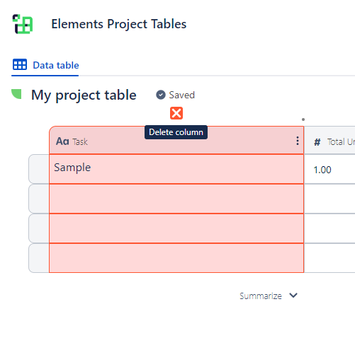 In order to delete columns, simply mouse over the column header and click the delete icon which displays over the column: